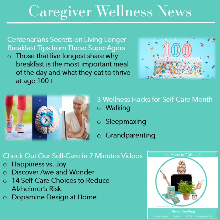 (3:11) – For CAREGIVER WELLNESS NEWS, Sherri dives into the secrets of living longer such as eating the breakfast foods that those who reach age 100 love for National Centenarian Day (9/22).